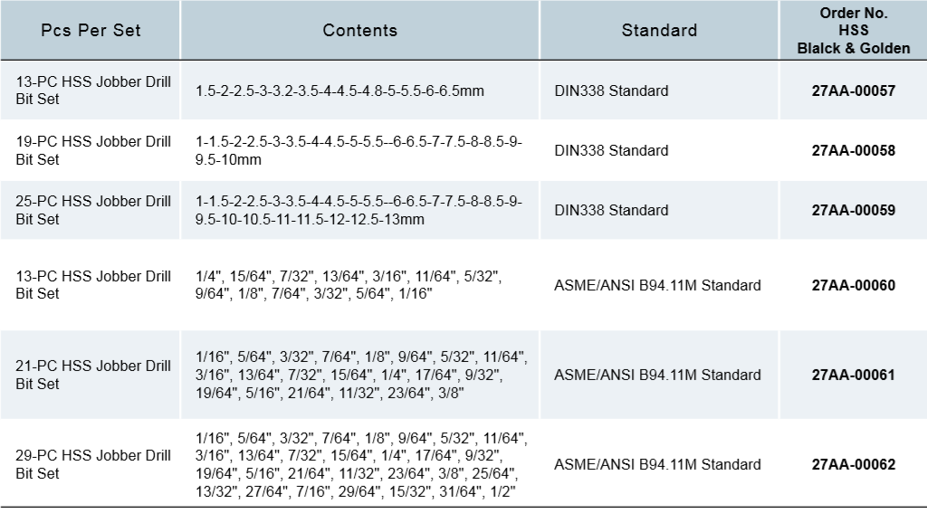 HSS Jobber Drill Bit Set,Plastic Box Packing